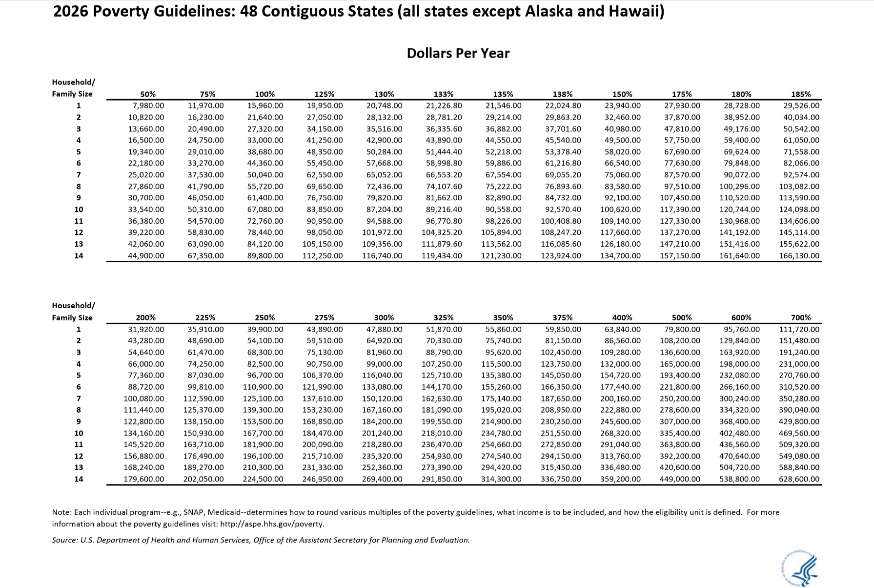PLEASE NOTE: If your income is lower than the Federal Poverty Level Information in your state, which is less than 138% of the FPL – Federal Poverty Level in states that expanded Medicaid and less than 100% of the FPL in states that did not. You will be offered Medicaid and as such will not be able to qualify for subsidized private health insurance. You can purchase private health insurance even if you qualify for Medicaid but you must do so without a subsidy. Click the chart below to determine the current Federal Poverty Level & percentages above it.